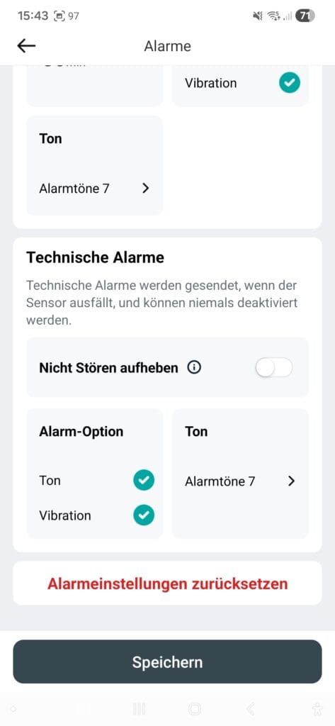 Die App macht einen guten Eindruck. Es gibt eine IOS- und eine Android-Version. Ich kann Alarmtöne wählen und ich kann sie ausschalten. Es gibt verschiedene Alarme: sehr niedrig, niedrig, hoch und dazu noch Verbindungs – und Systemalarme.
