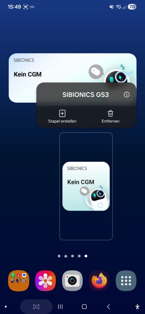 Man kann eine „Glukoseblase“ aktivieren – damit bekommt man eine schwebende Anzeige seiner Werte auf allen Bildschirmen des Handys.